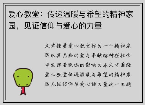 爱心教堂:传递温暖与希望的精神家园,见证信仰与爱心的力量